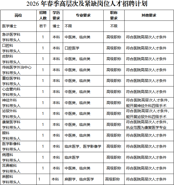 本著按需招聘,貫徹“公開、平等、競爭、擇優”原則,現將2026年春季高層次及緊缺崗位人才招聘有關事項公告如下: