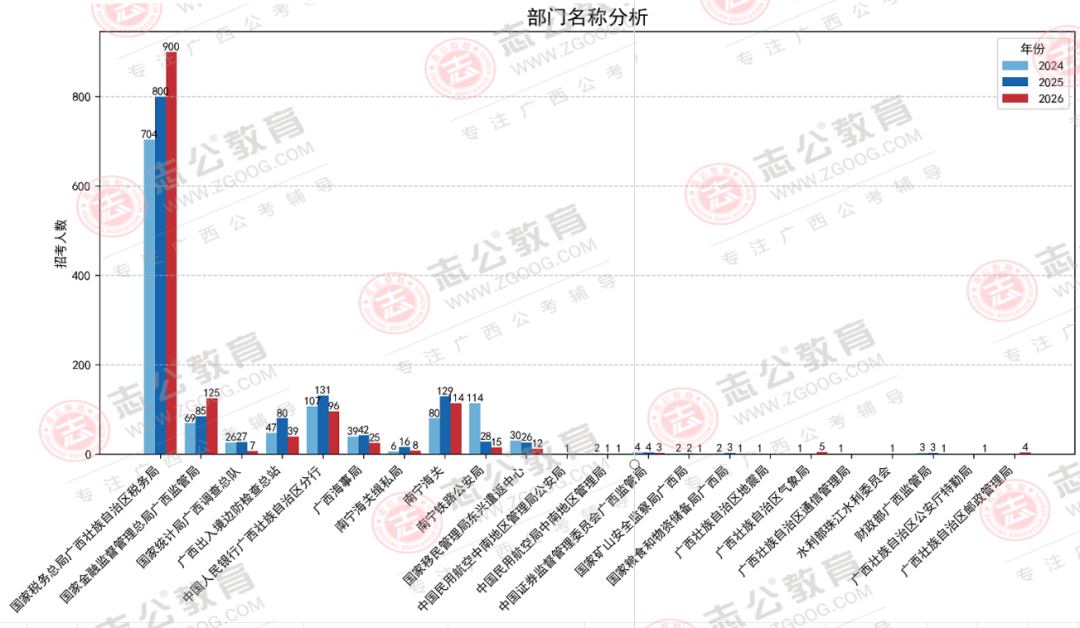 在今年,廣西國稅系統這個招考“大戶”,招錄漲到了900人,職位數占比66%。此外,國家金融監督管理總局廣西監管局招125人,呈正增長,與2025年國考相比漲幅47%。南寧海關從2025年招錄129人,2026年只招錄114人,相比縮減了11.63人。