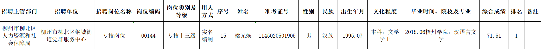 柳北區2025年度下半年事業單位公開考試招聘工作人員擬聘用人選公示(第六批)