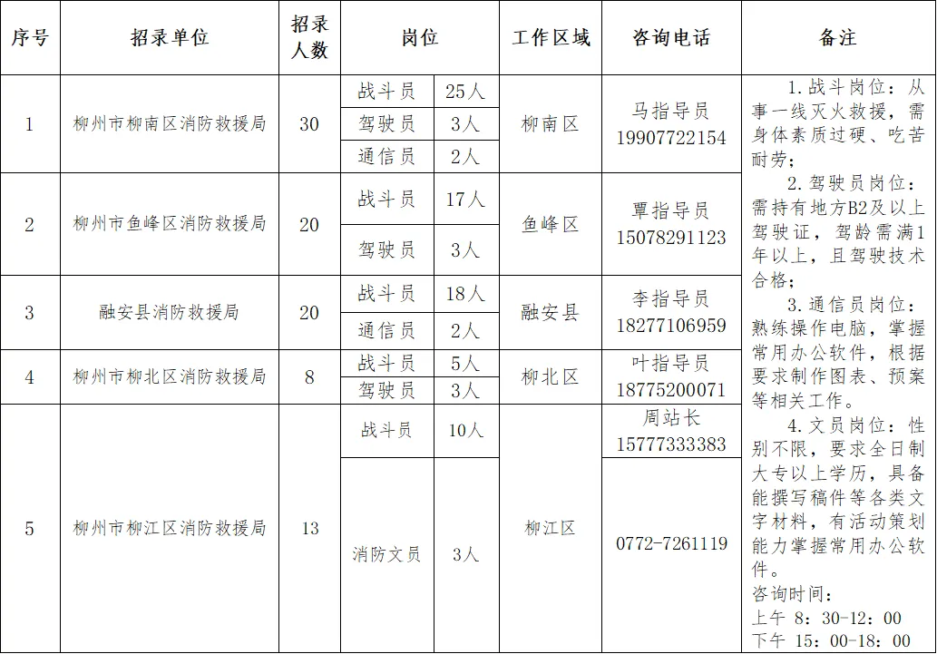 為進(jìn)一步加強(qiáng)柳州市消防救援隊(duì)伍力量建設(shè),提升綜合應(yīng)急救援能力,柳州市消防救援局按照“公平公正、平等自愿、競(jìng)爭(zhēng)擇優(yōu)”的原則,面向社會(huì)公開招錄政府專職消防員,現(xiàn)將有關(guān)事項(xiàng)公告如下: