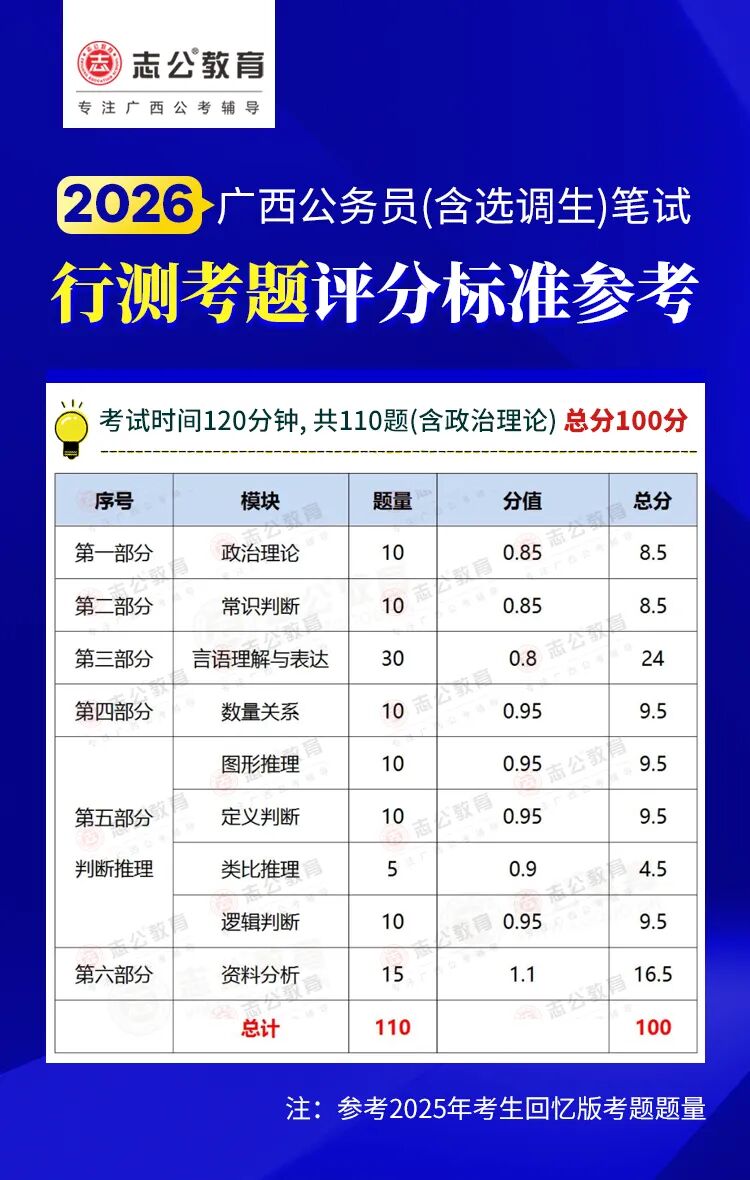2026廣西區考/事業單位筆試分值