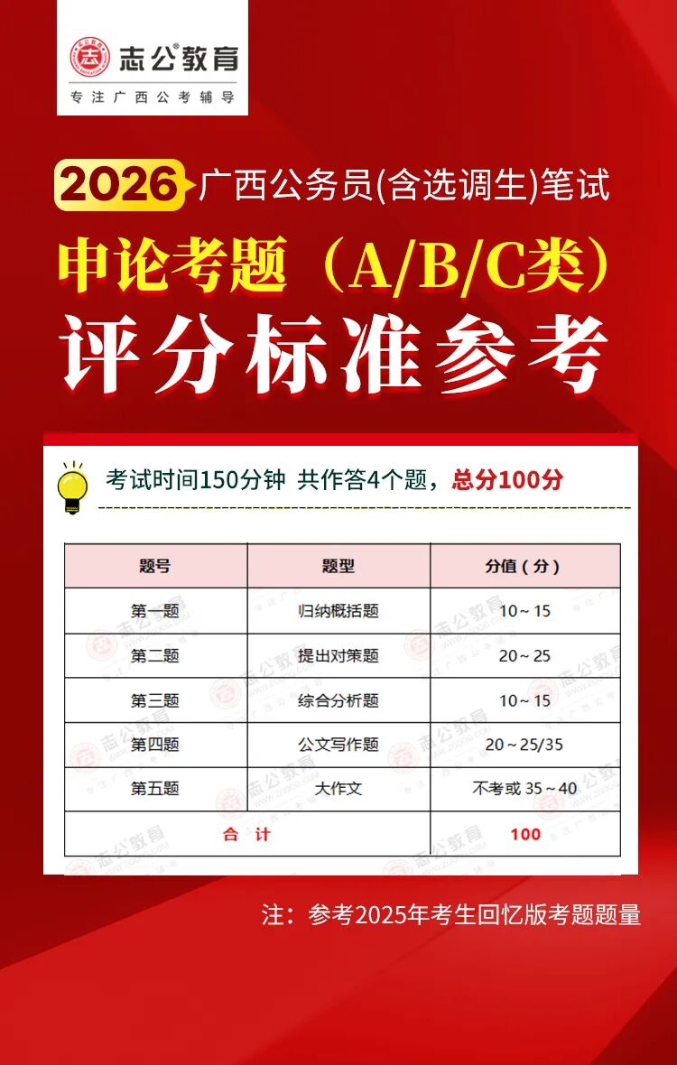廣西考生須看!2026年廣西區考、事業單位聯考筆試評分標準!