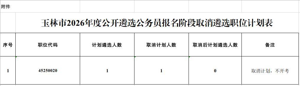 原文標題:關于玉林市2026年度公開遴選公務員報名階段取消職位計劃的通告
