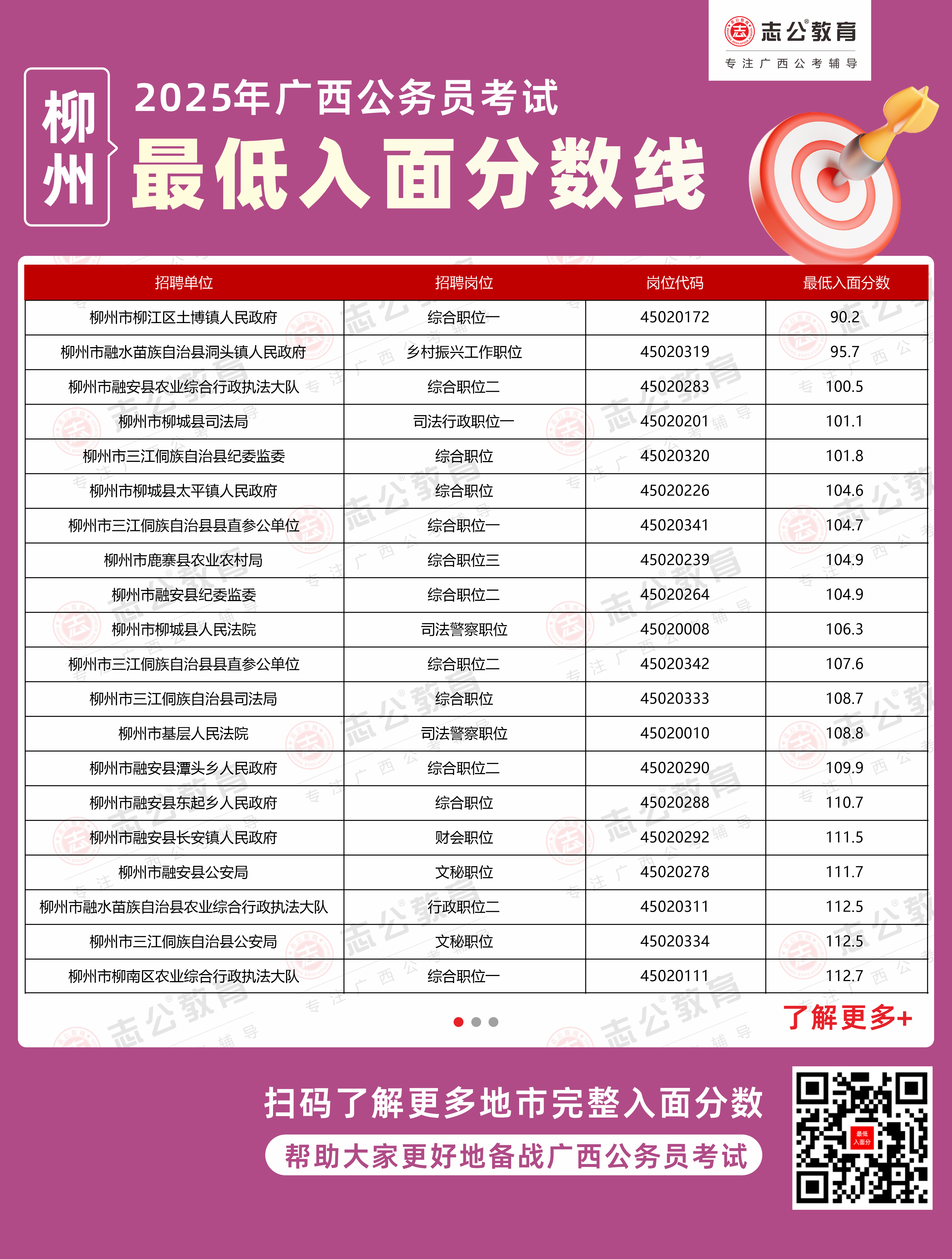 (點(diǎn)擊下載更多2025年柳州公務(wù)員最低入面分?jǐn)?shù),數(shù)據(jù)整理自官方發(fā)布的面試資格審查公告)