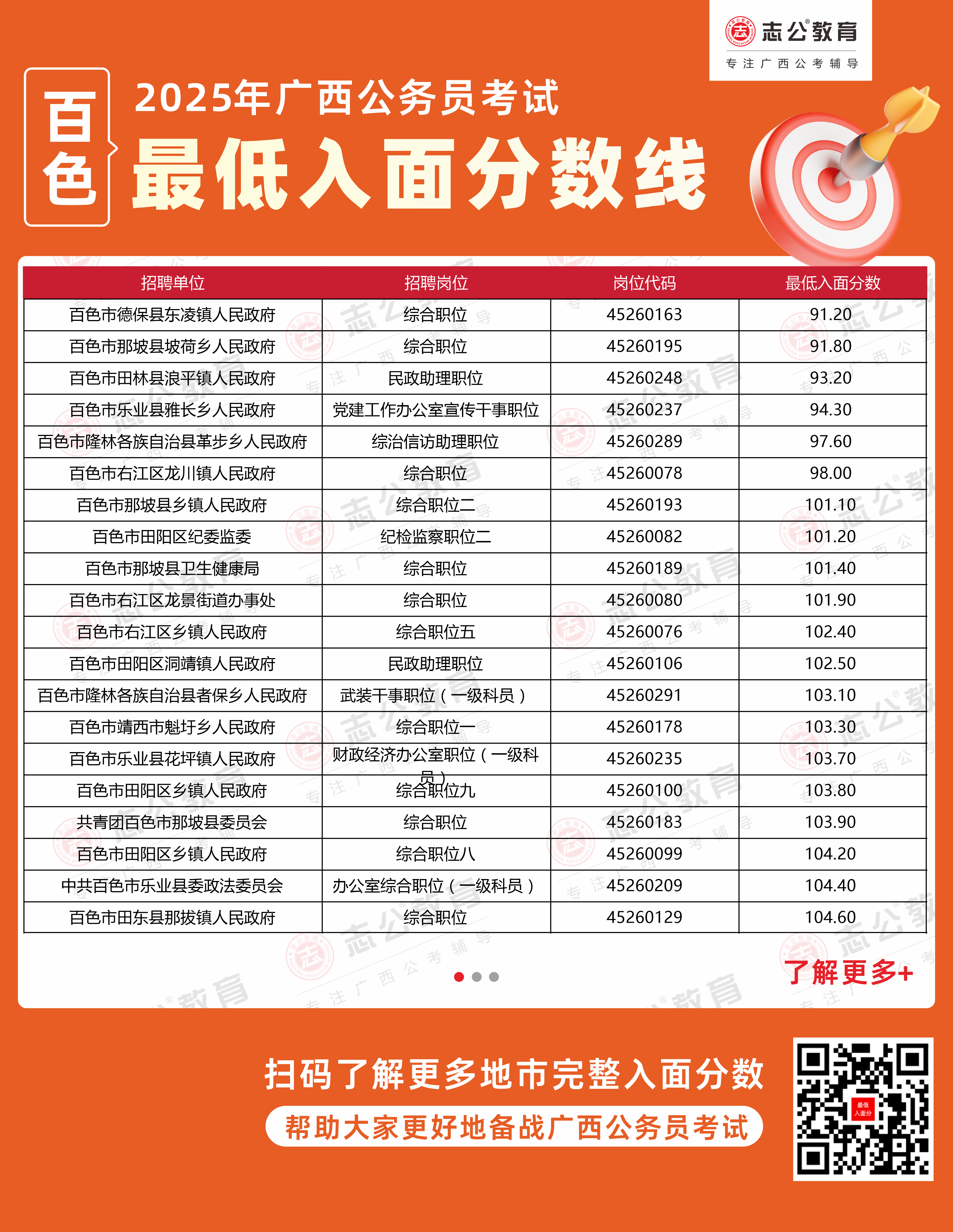 2025年廣西公務(wù)員考試筆試成績(jī)及面試入圍名單已公布。作為革命老區(qū)和廣西地域面積最大的地級(jí)市,百色市的招錄職位一直備受考生關(guān)注。為幫助考生了解各單位招錄情況,本文根據(jù)官方發(fā)布的面試資格審查公告,整理了部分百色市直及縣區(qū)單位的進(jìn)面分?jǐn)?shù)數(shù)據(jù),供廣大考生在備考過(guò)程中進(jìn)行參考。