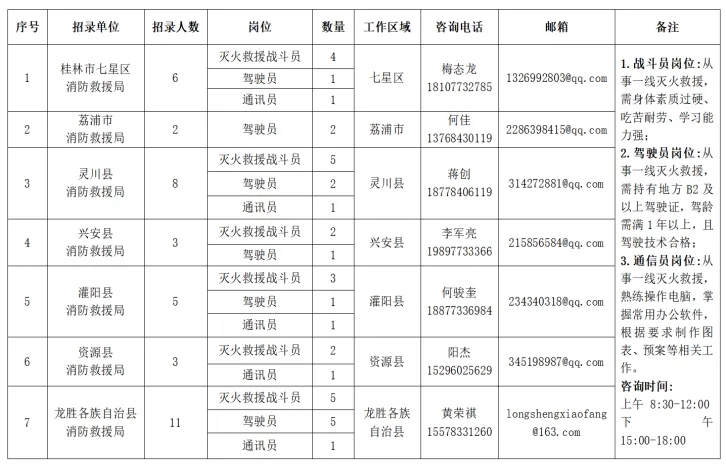 為進一步加強全市消防救援力量建設,提升綜合應急救援能力,按照公平公正、平等自愿、競爭擇優的原則,桂林市消防救援局面向社會公開招錄政府專職消防員,現將有關事項公告如下: