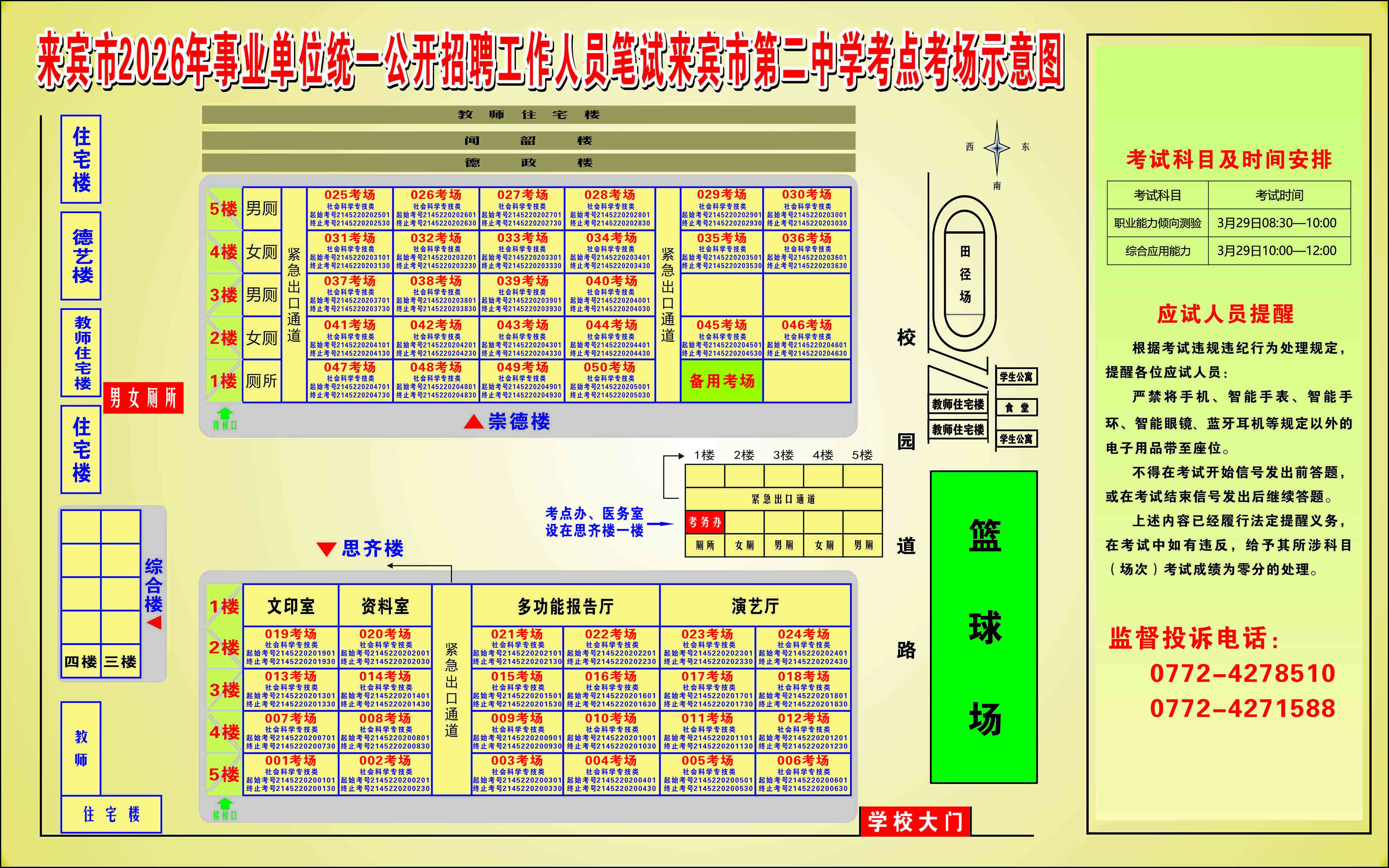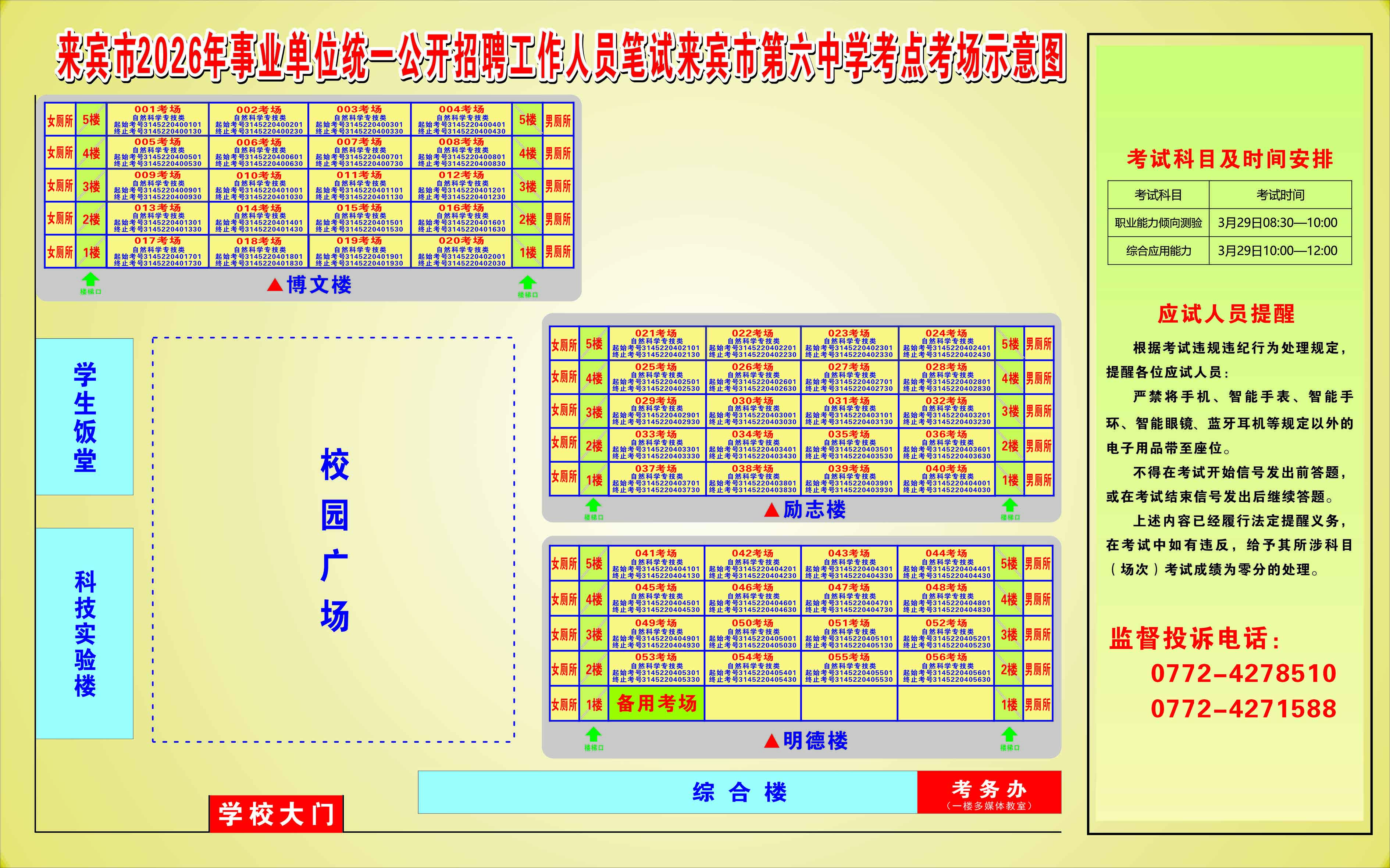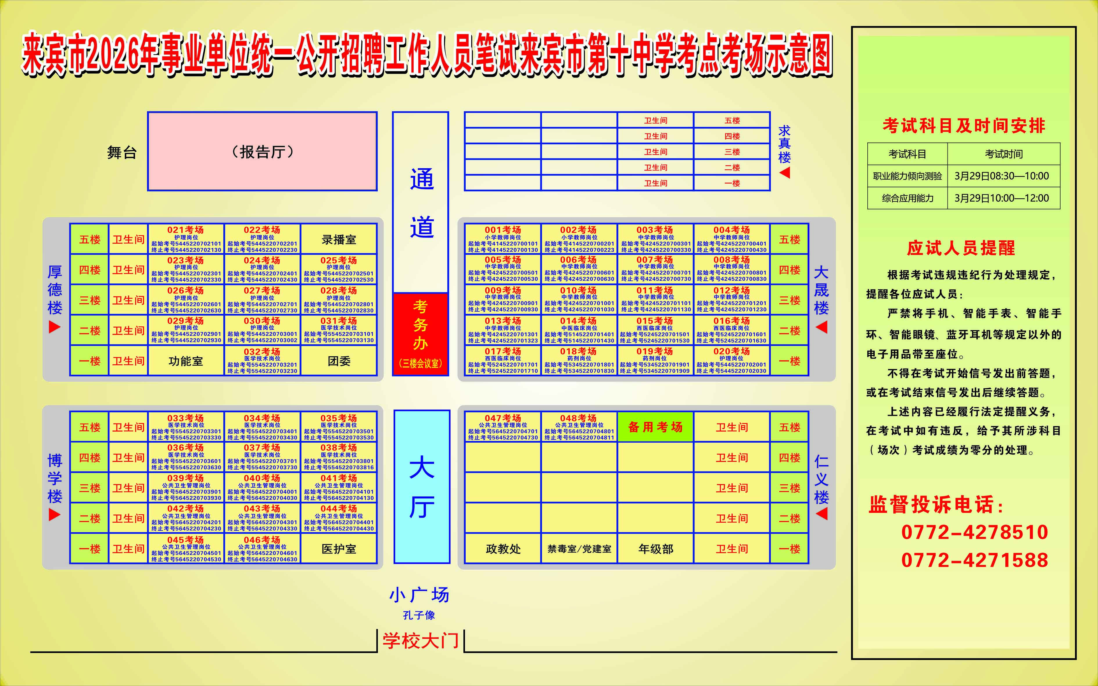 2026年來賓市事業單位統一公開招聘工作人員筆試考生須知及考點考場示意圖