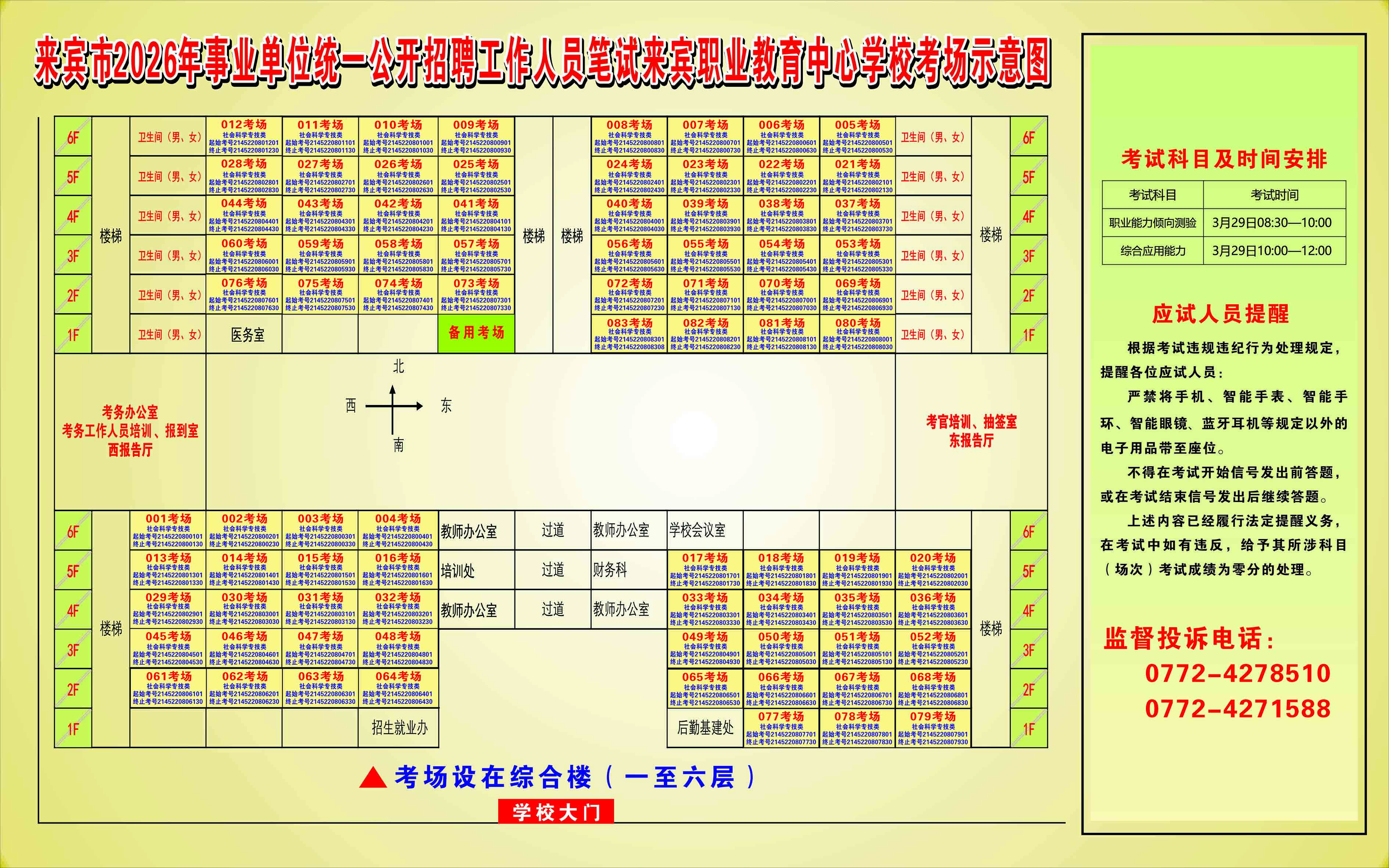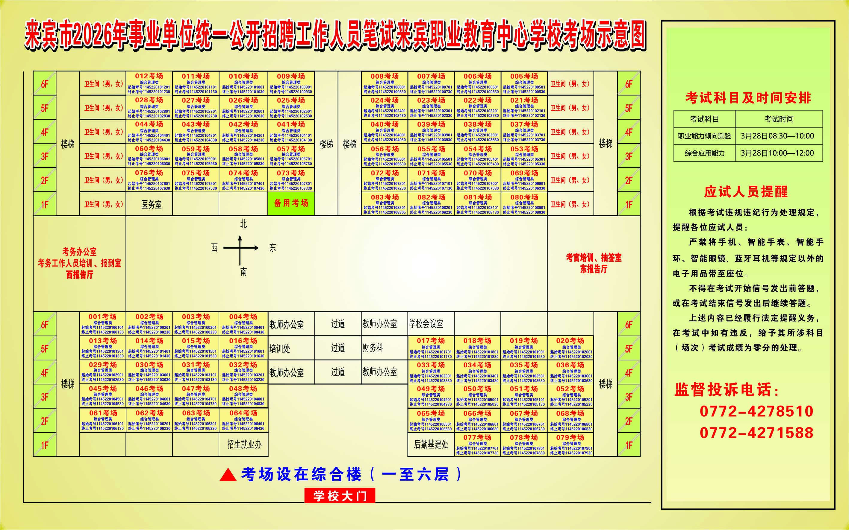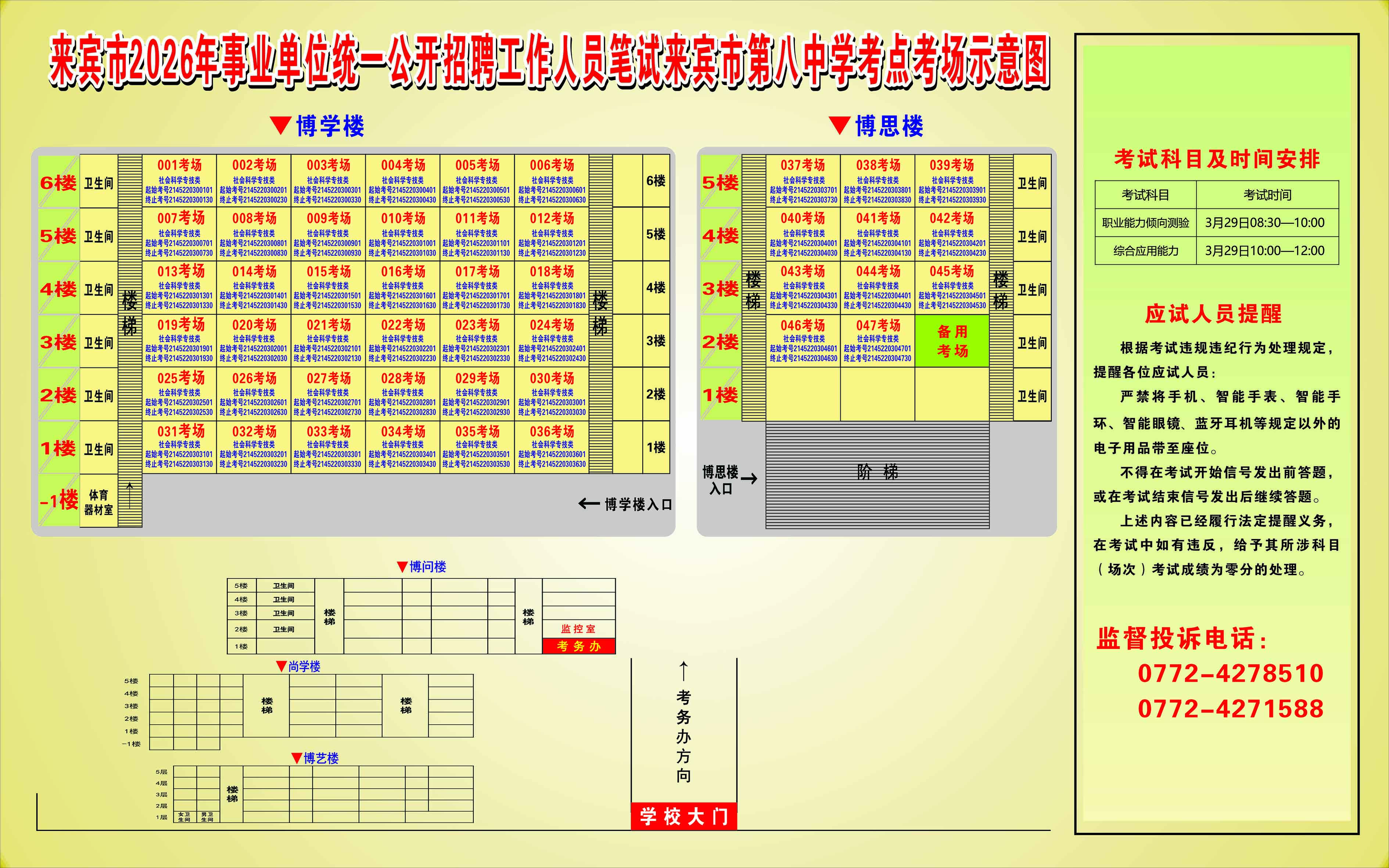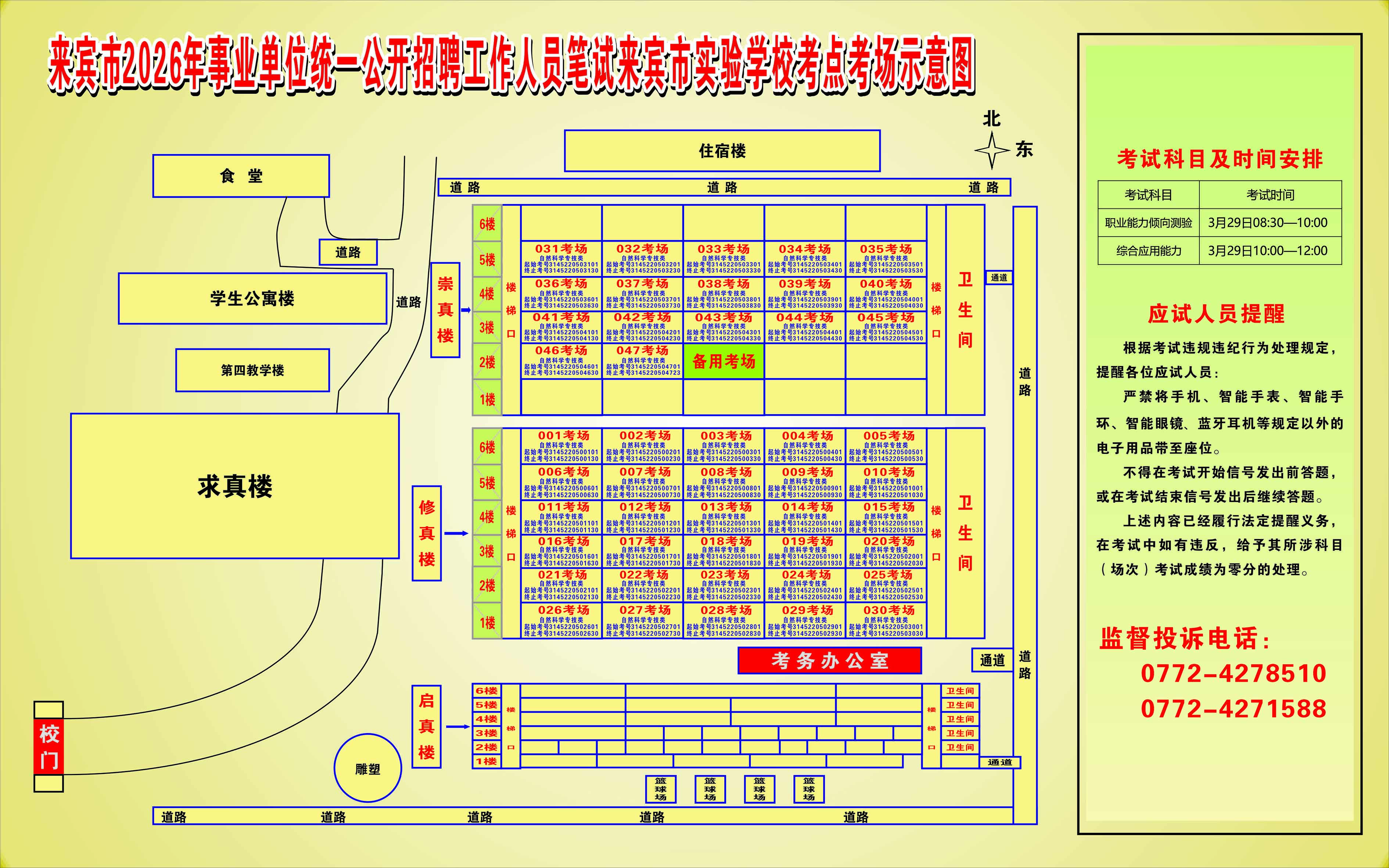 2026年來賓市事業單位統一公開招聘工作人員筆試考生須知及考點考場示意圖