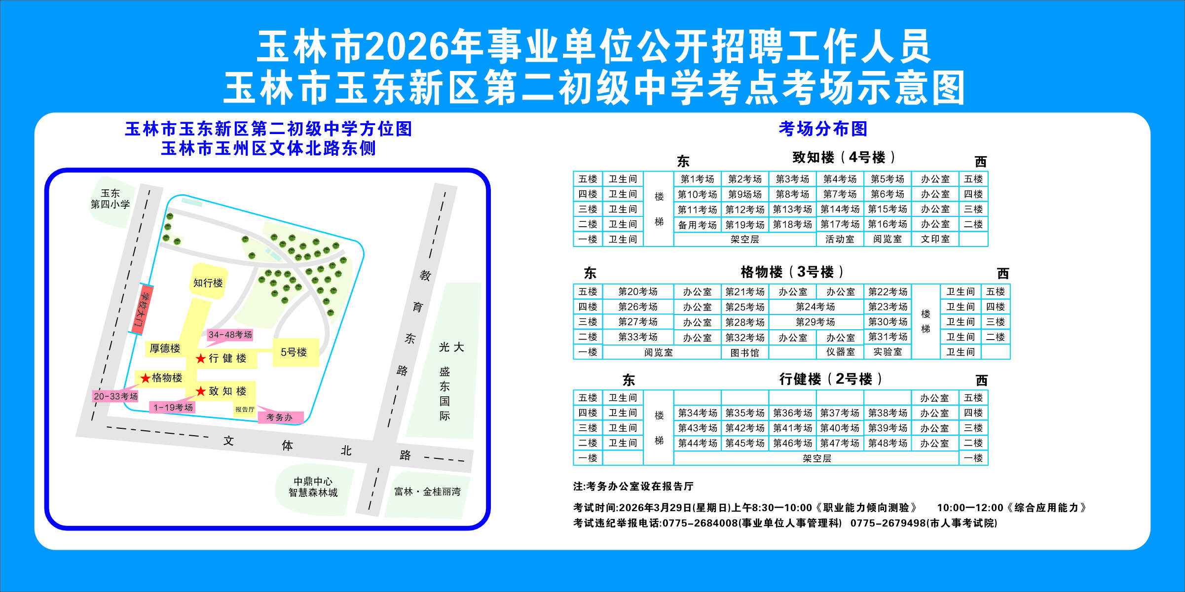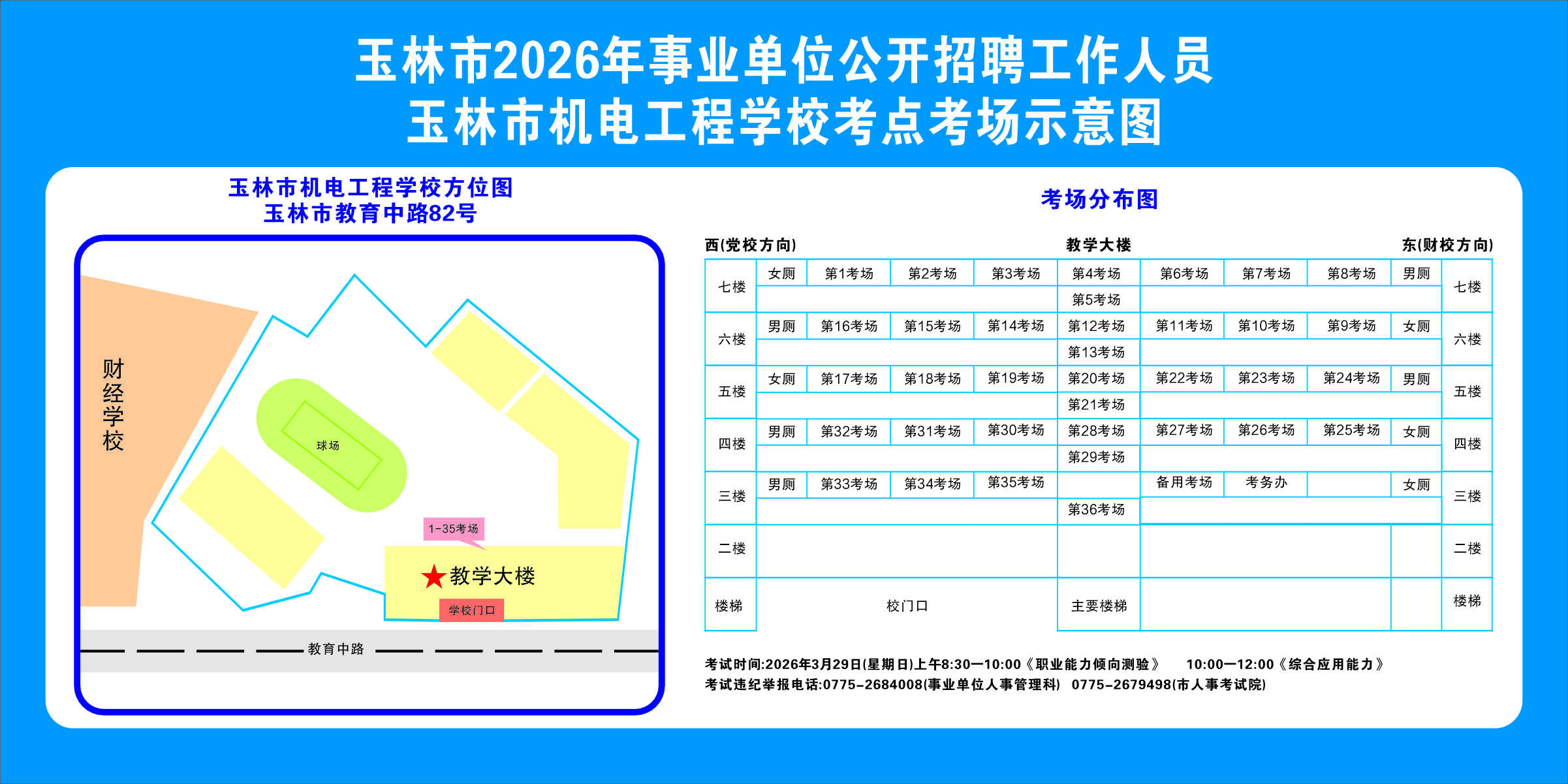 玉林市2026年事業單位公開招聘工作人員筆試將于3月29日舉行,現就有關注意事項提示如下,請廣大考生做好應試準備工作,準確掌握考試時間、考點地址及相關注意事項。